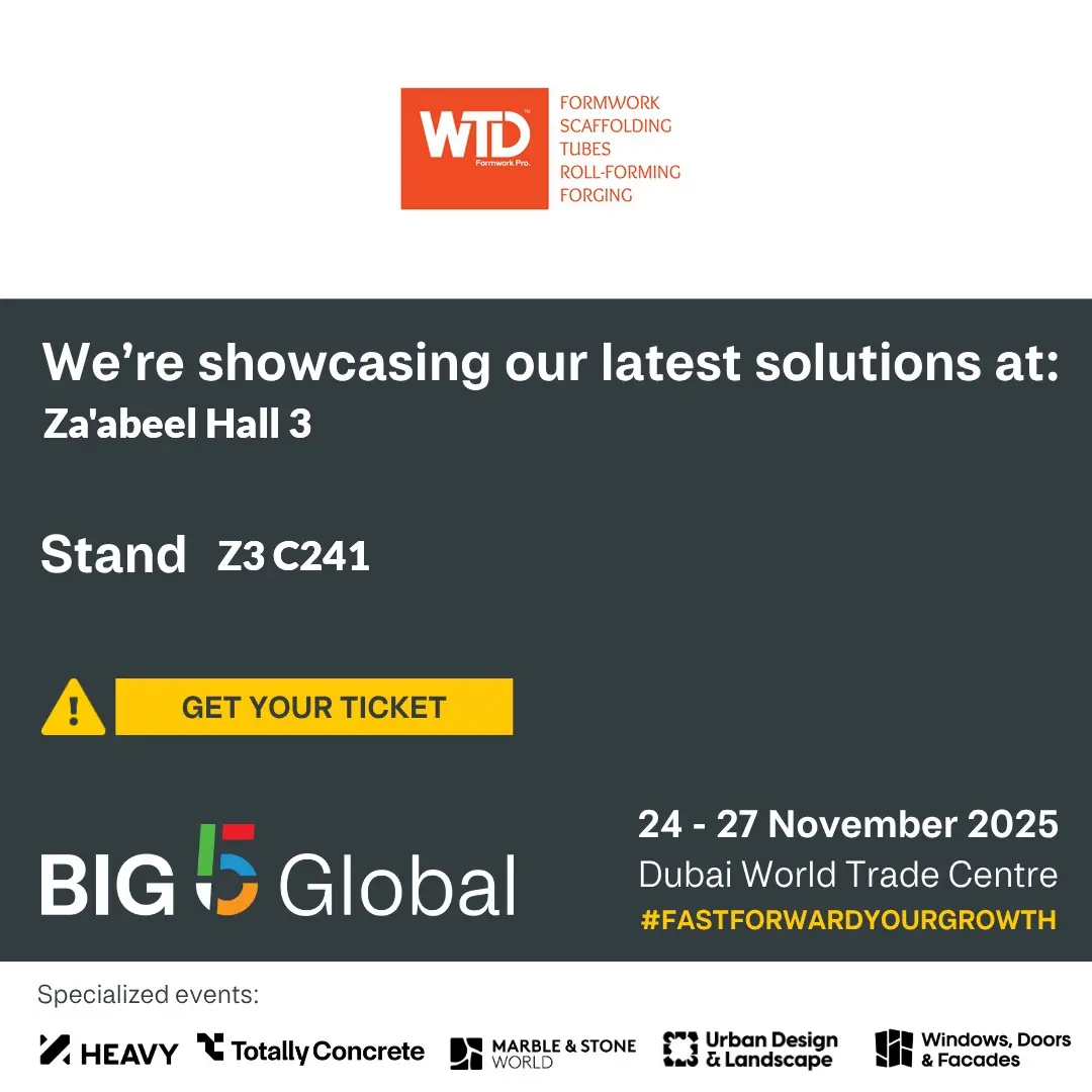 Visit us at Za’abeel Hall 3 – Stand Z3 C241, where we’ll showcase our latest solutions, including the WTD Smart Beam and a complete range of advanced formwork and shoring solutions designed to deliver efficiency, safety, and precision.